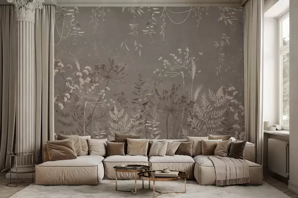 Papel tapiz Diseño botánico ligero con flores y hojas. Nr. w05092v1