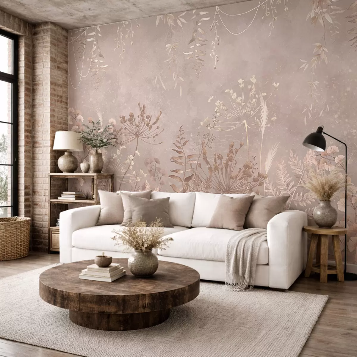 Papel tapiz Motivo botánico en beige suave con flores silvestres. Nr. w05092v2
