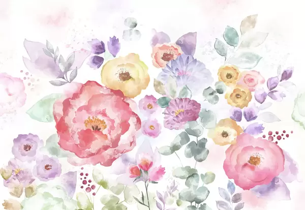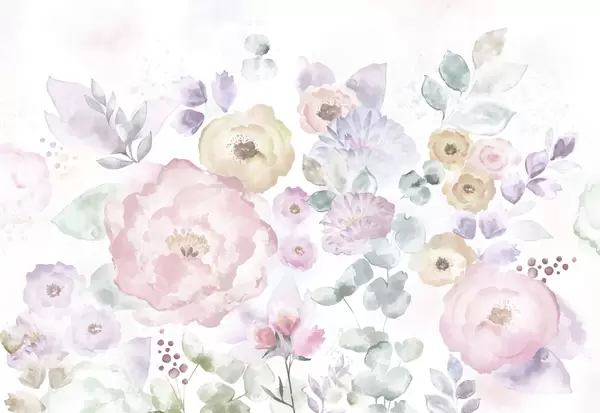Papel tapiz Composición en acuarela suave con flores y hojas Nr. w05093