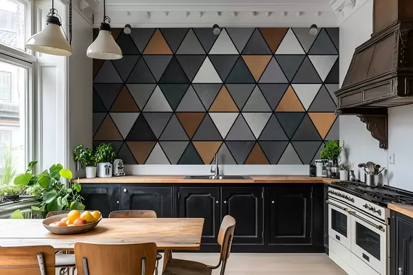 Papel tapiz Patrón triangular con tonos grises y cálidos Nr. w05095v1