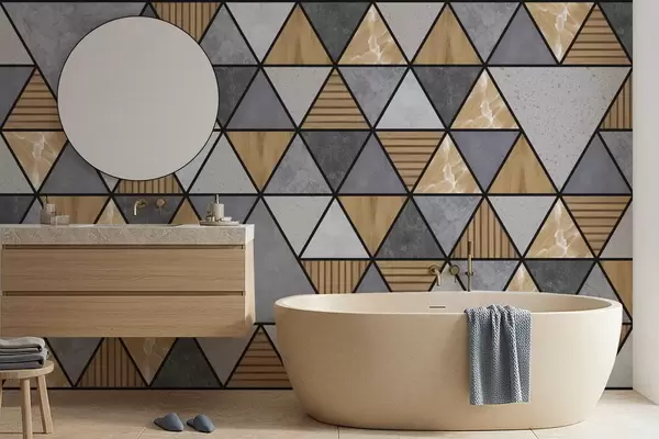 Papel tapiz Adorno triangular con colores neutros y cálidos. Nr. w05096v1