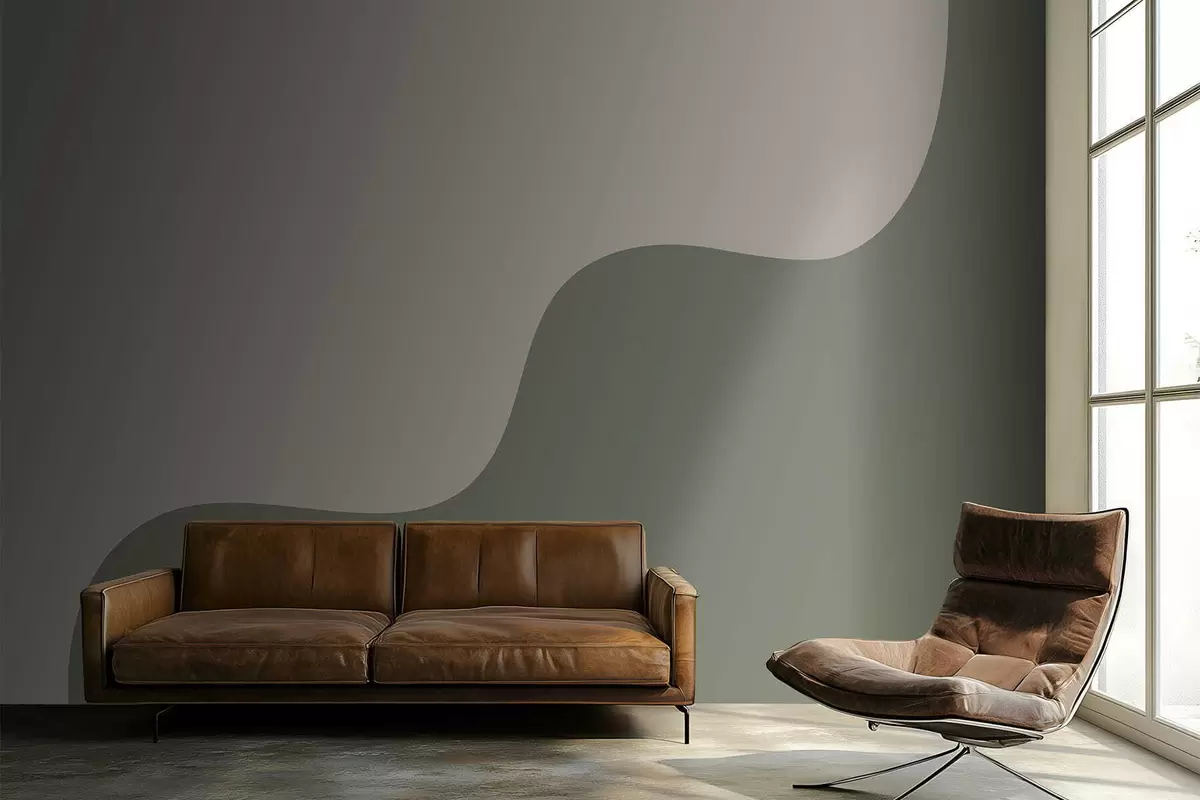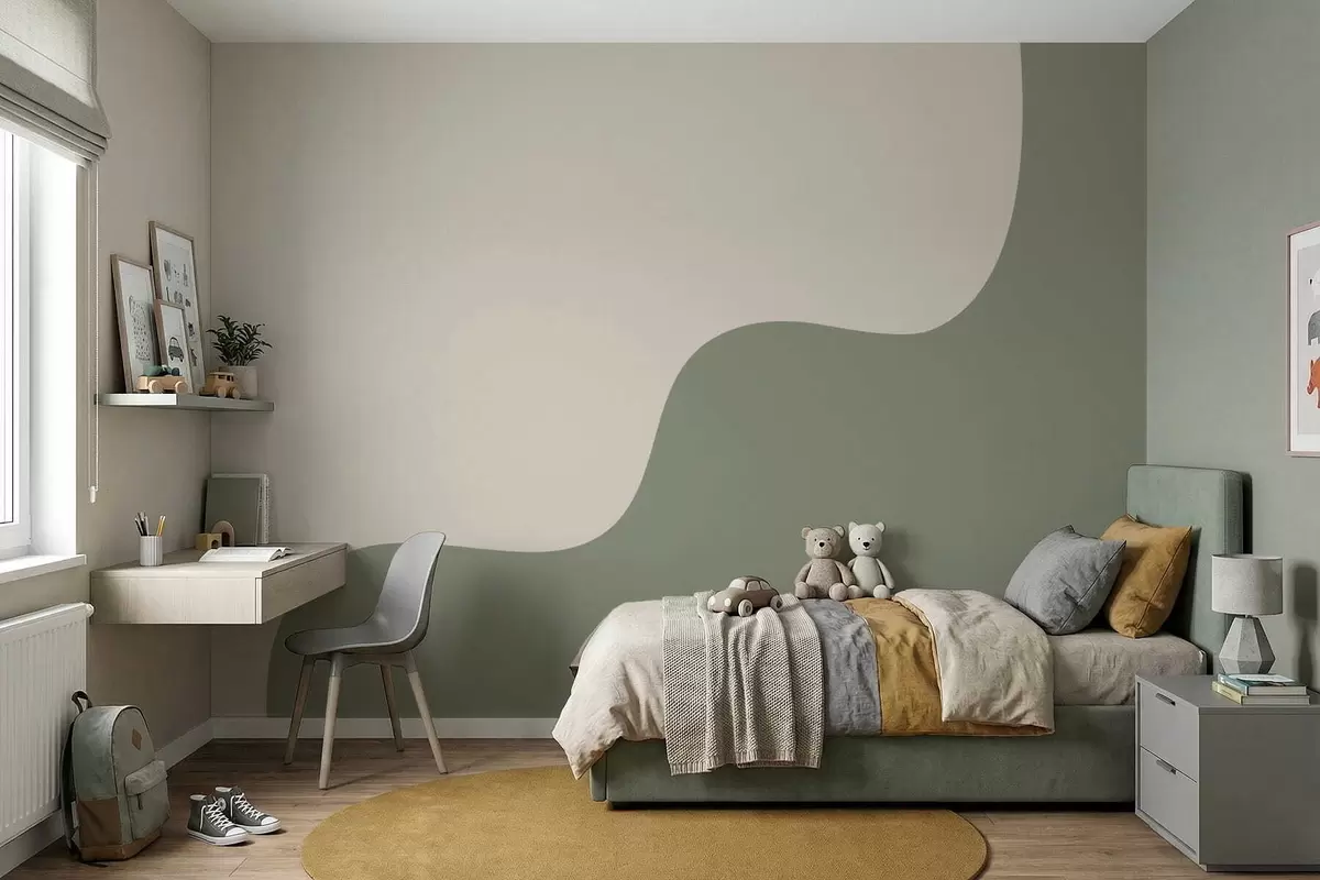 Papel tapiz Formas abstractas suaves en tonos beige claro y verde. Nr. w05097