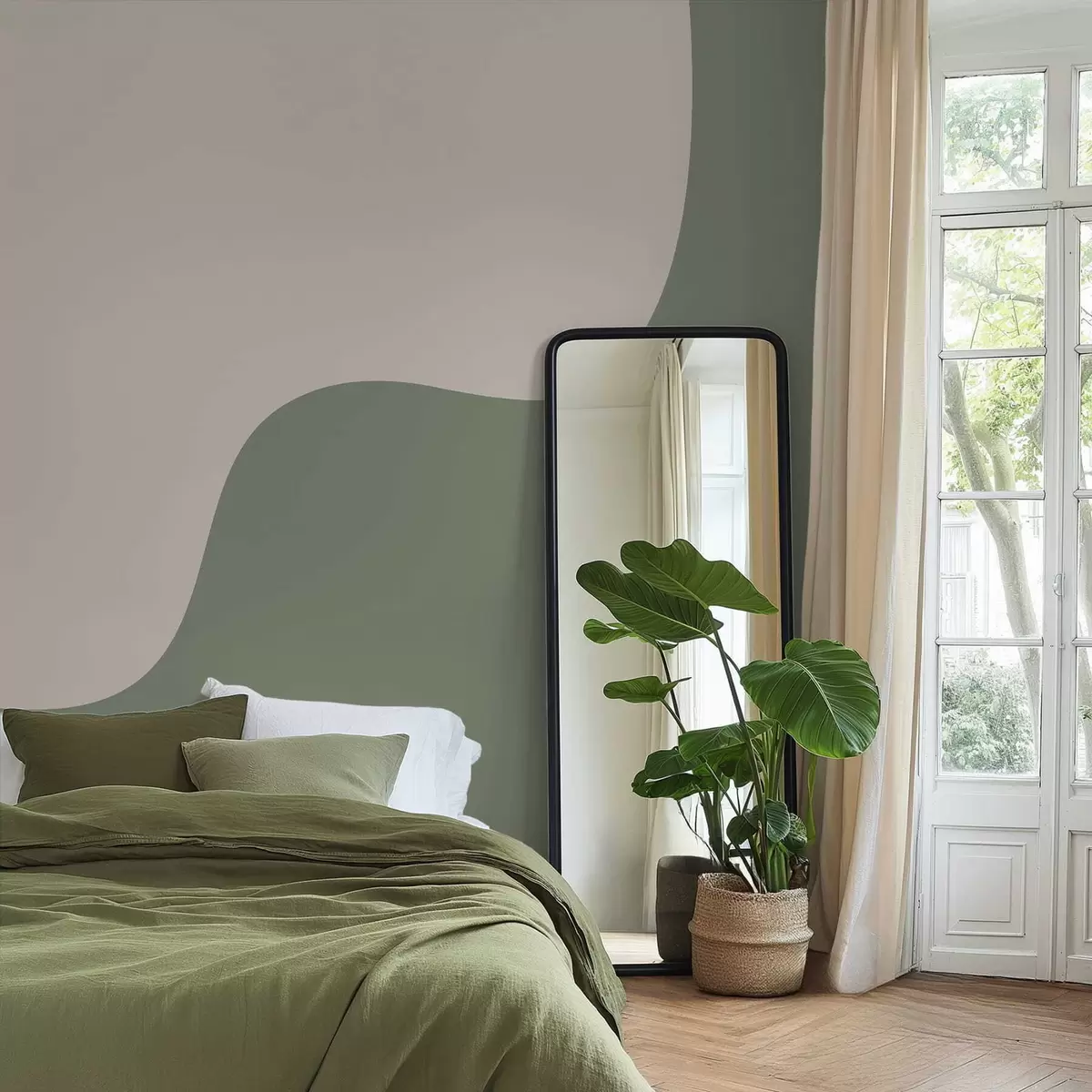 Papel tapiz Formas abstractas suaves en tonos beige claro y verde. Nr. w05097