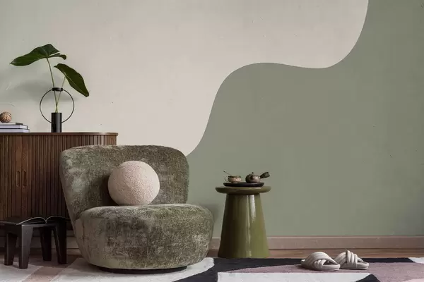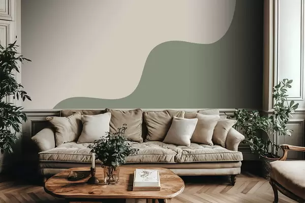 Papel tapiz Formas abstractas suaves en tonos beige claro y verde. Nr. w05097