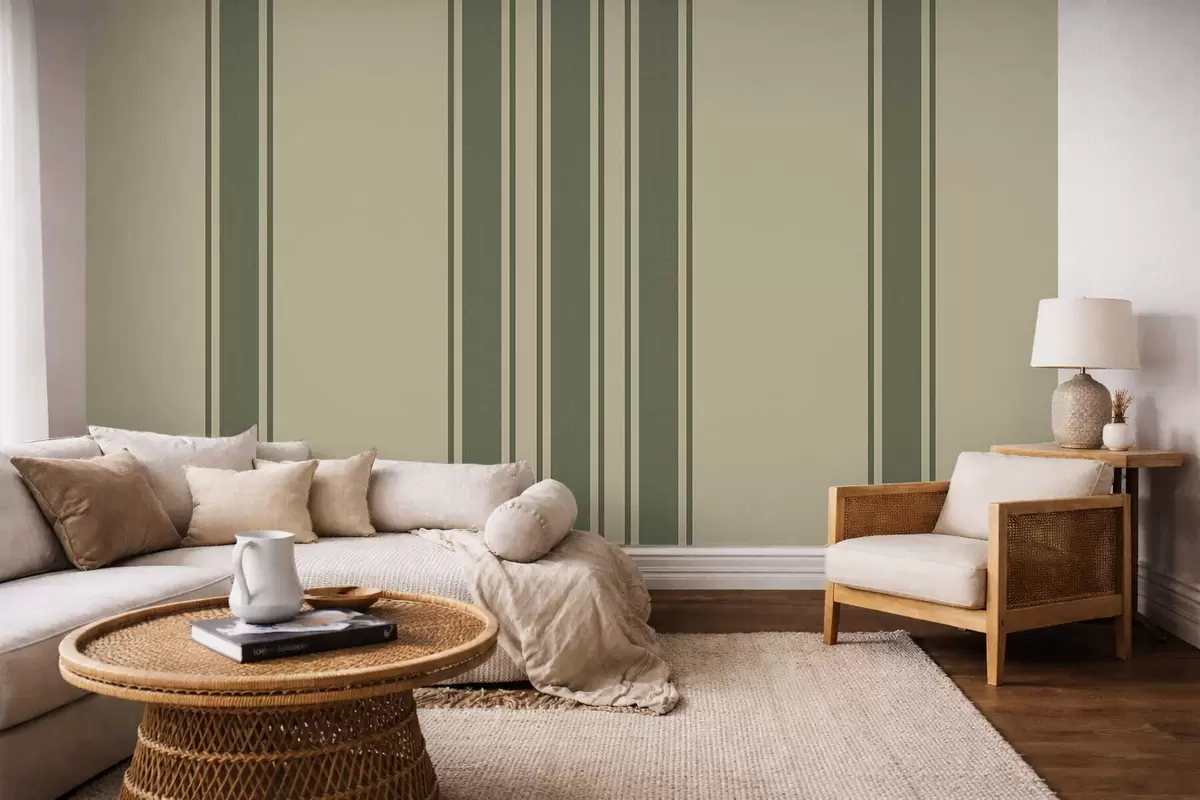 Papel tapiz Rayas verticales en tonos verdes apagados y beige. Nr. w05098