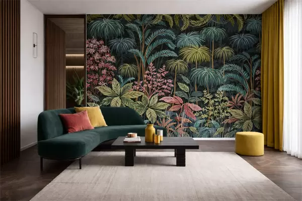 Papel tapiz Follaje tropical denso con hojas grandes. Nr. w05116
