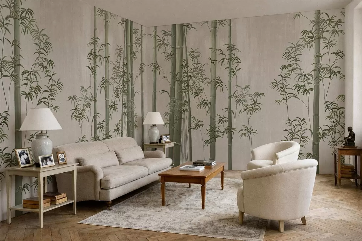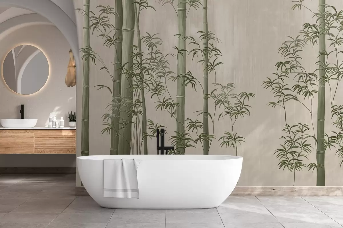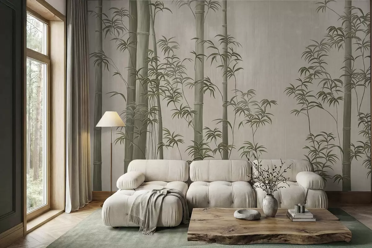 Papel tapiz Bambú verde claro Nr. w05120v1