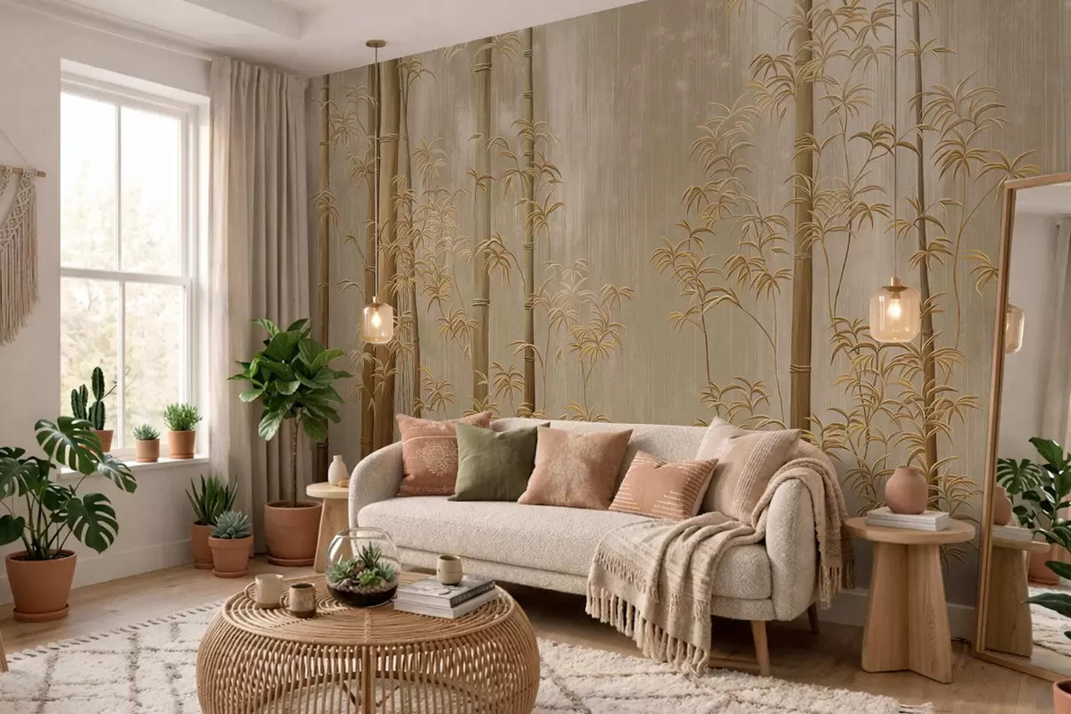 Papel tapiz Bambú beige de tallos finos Nr. w05120v2