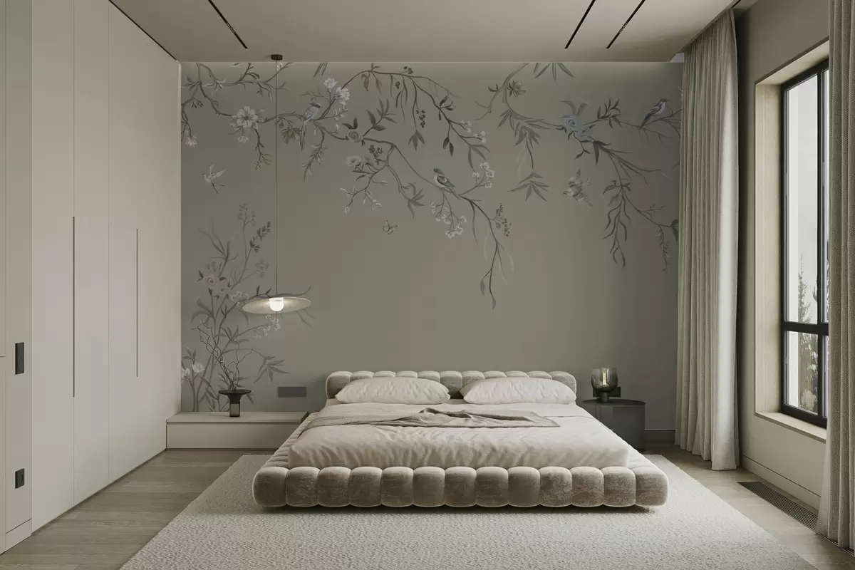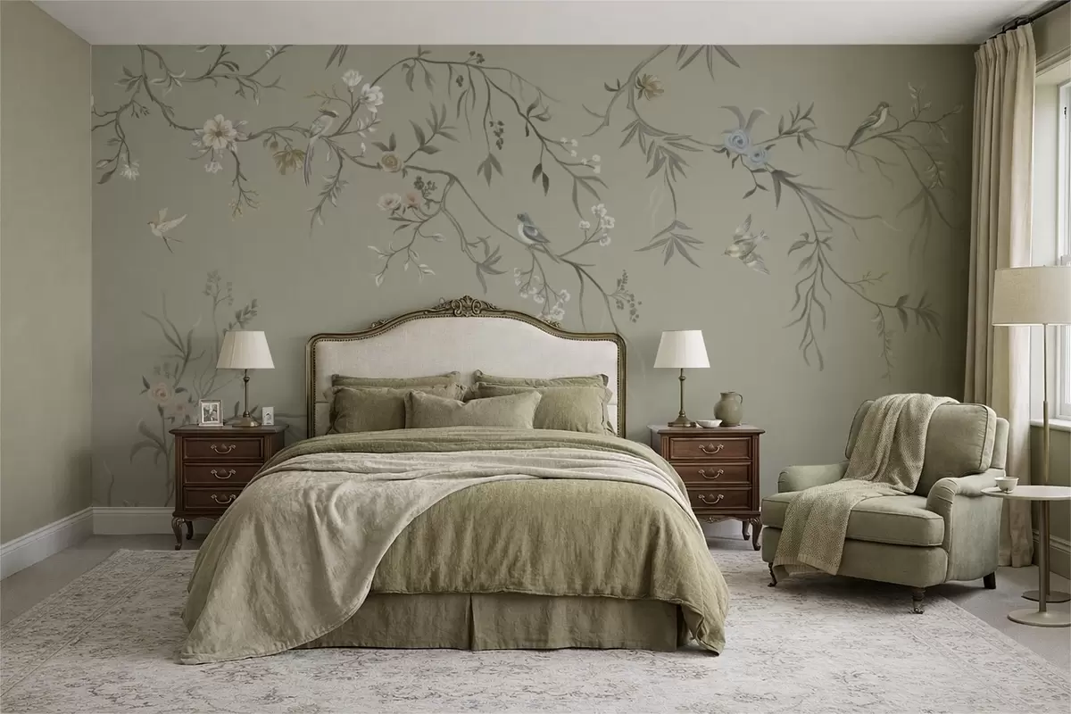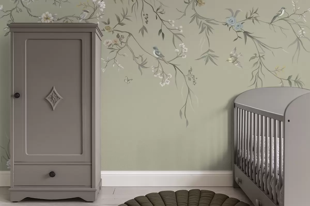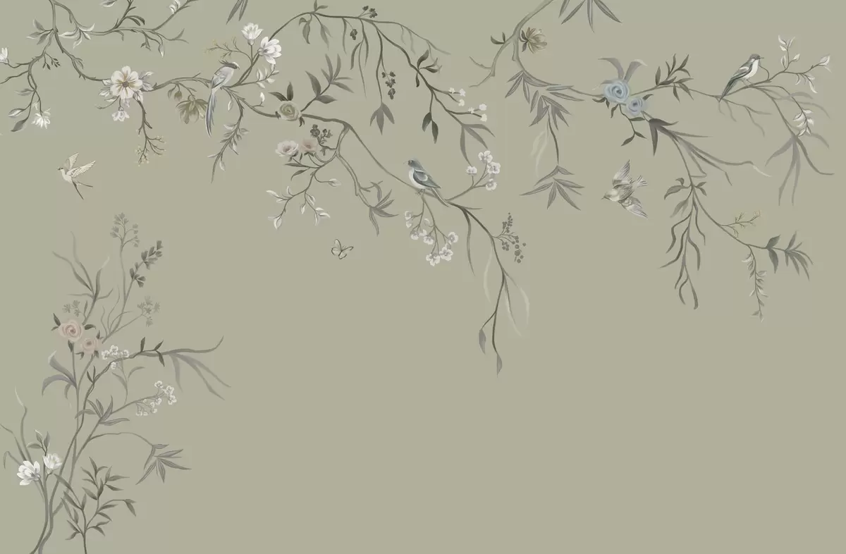 Papel tapiz Diseño floral con pájaros sobre fondo fresco Nr. w05127v6
