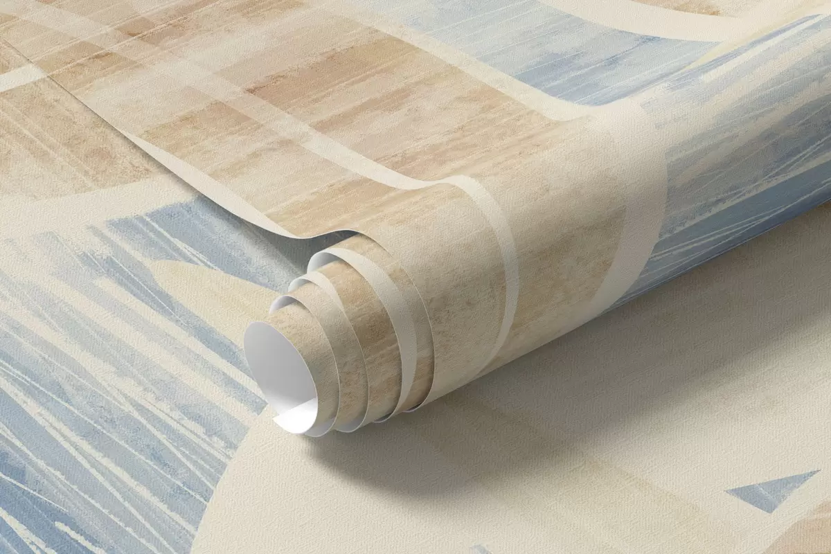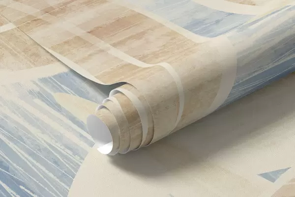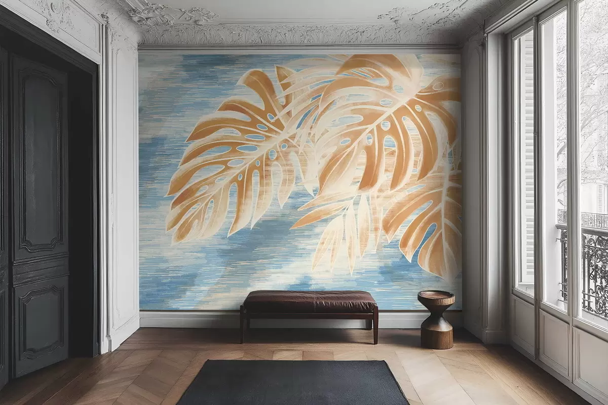Papel tapiz Hojas en tonos arena claros sobre fondo azul. Nr. w05130v1