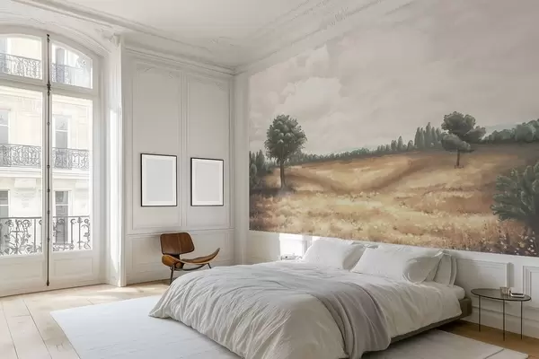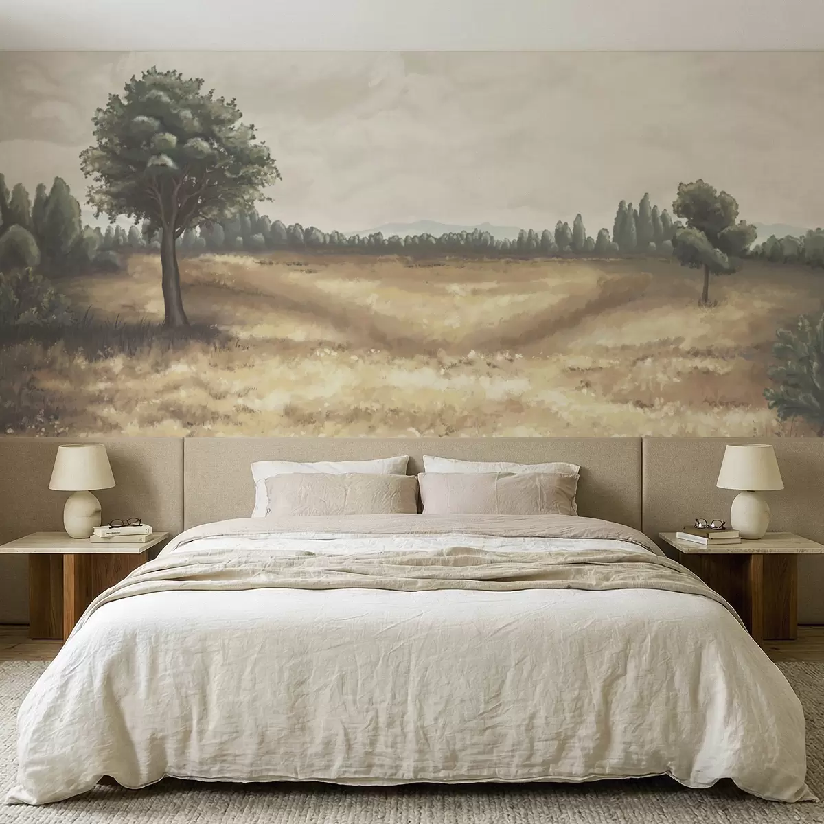 Papel tapiz Paisaje pintado con árboles y campo abierto Nr. w05131