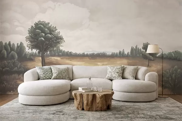 Papel tapiz Paisaje pintado con árboles y campo abierto Nr. w05131