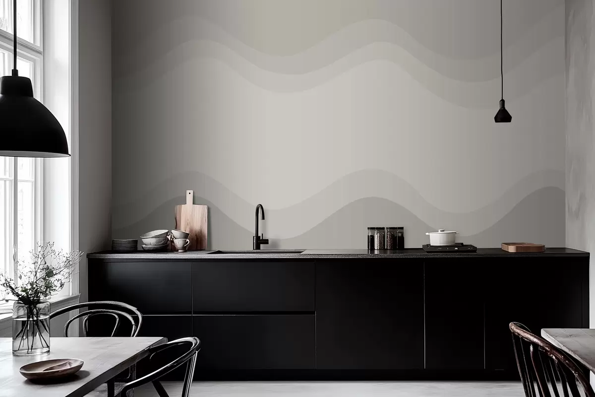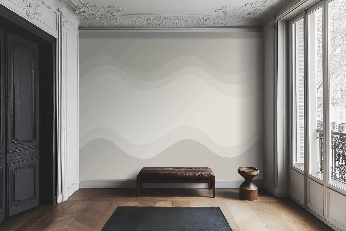 Papel tapiz Ondas abstractas en una paleta de colores beige neutros. Nr. w05132v3