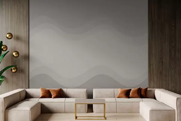 Papel tapiz Ondas abstractas en una paleta de colores beige neutros. Nr. w05132v3