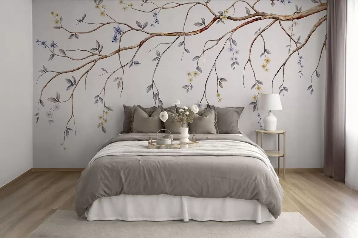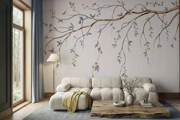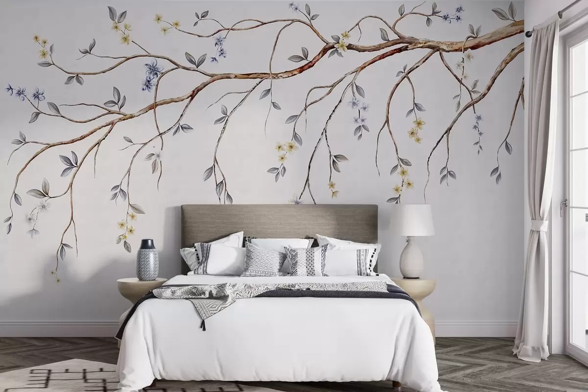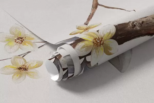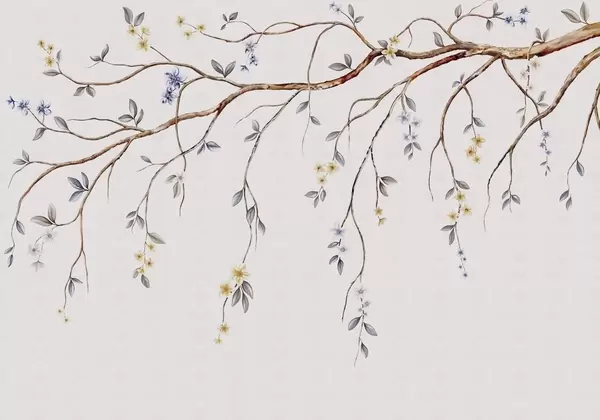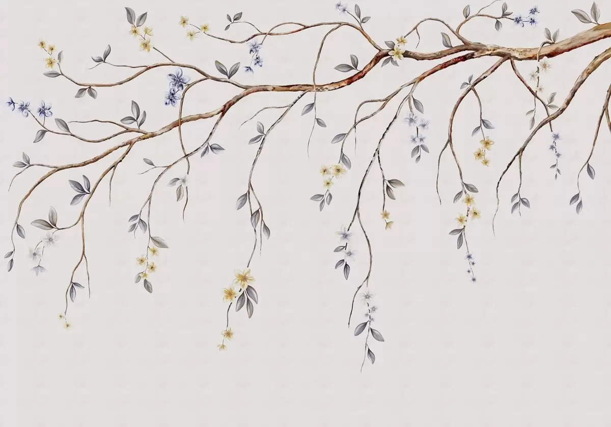 Papel tapiz Ramas delgadas con pequeñas flores sobre fondo claro. Nr. w05145