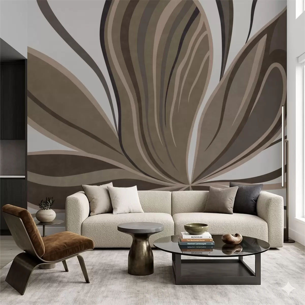 Papel tapiz Flor estilizada con líneas fluidas en tonos marrones Nr. w05147