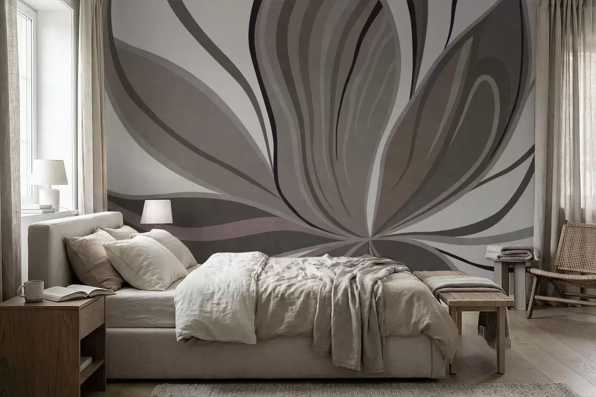 Papel tapiz Flor abstracta con líneas suaves en tonos gris-beige Nr. w05147v1
