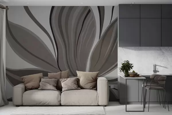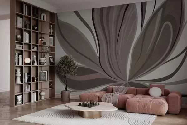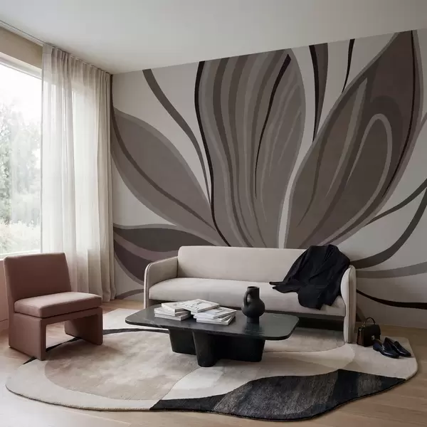 Papel tapiz Flor abstracta con líneas suaves en tonos gris-beige Nr. w05147v1