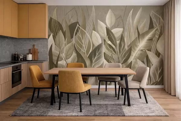 Papel tapiz Hojas abstractas en tonos beige y verde Nr. w05148