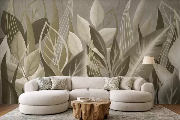 Papel tapiz Hojas abstractas en tonos beige y verde Nr. w05148