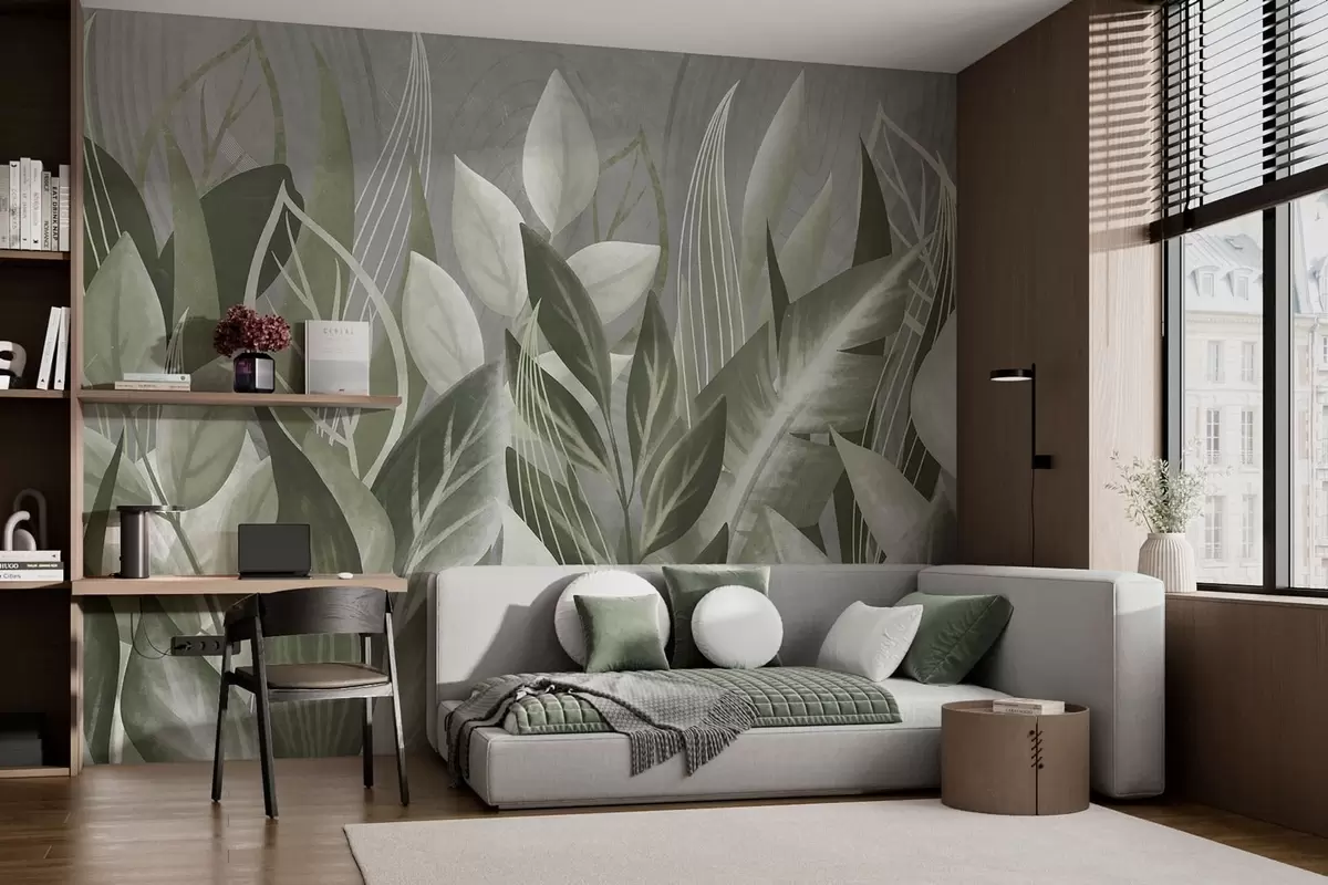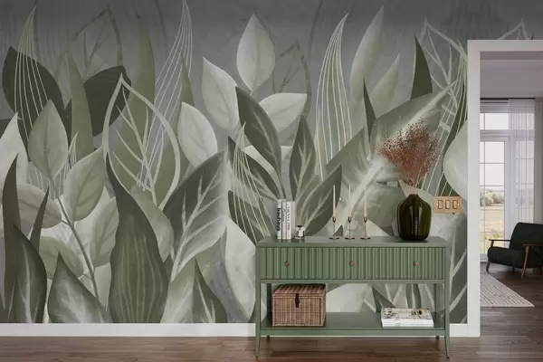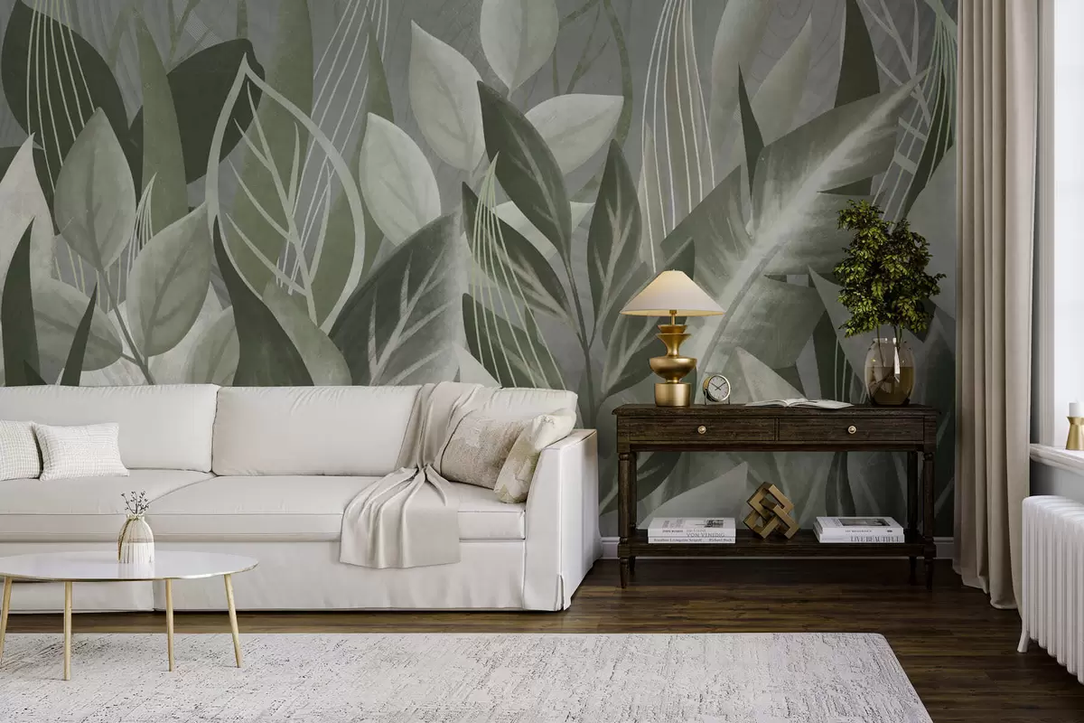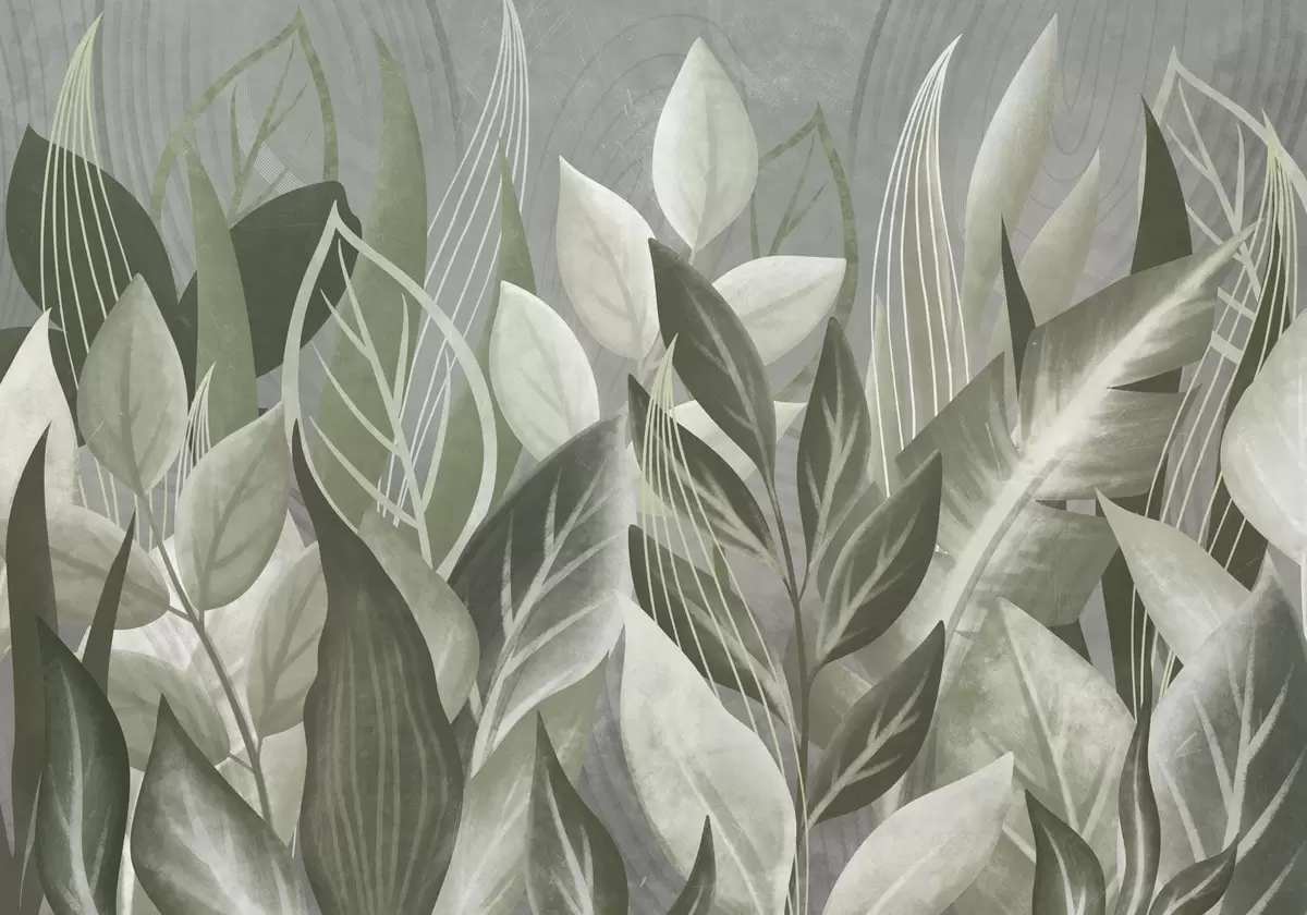 Papel tapiz Hojas abstractas en tonos gris verdosos Nr. w05148v1