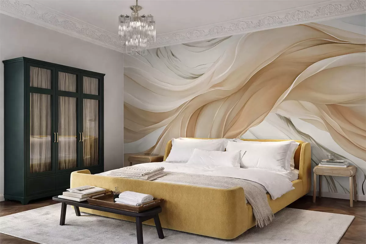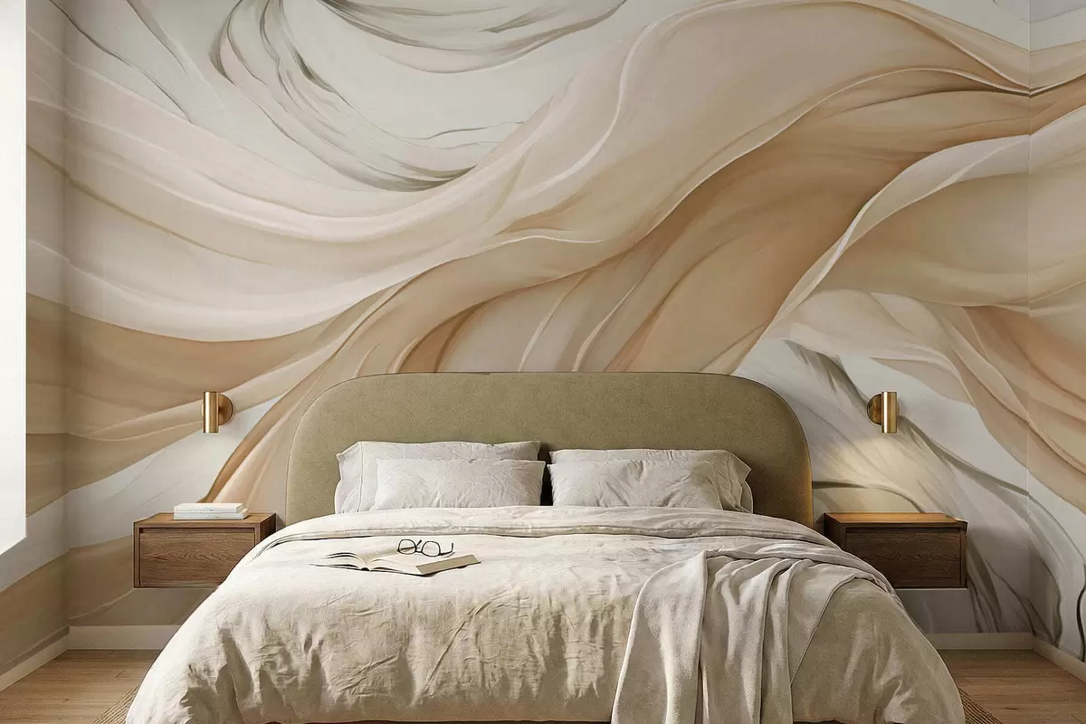 Papel tapiz Ondulaciones fluidas de tela beige Nr. w05152