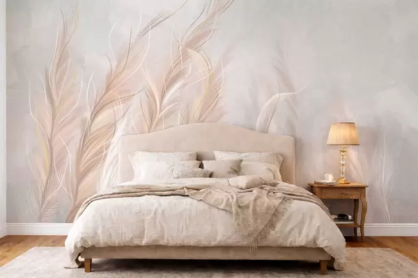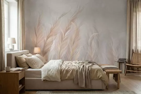 Papel tapiz Plumas suaves y abstractas en tonos neutros claros. Nr. w05153