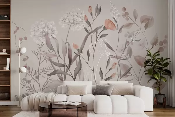Papel tapiz Plantas silvestres aireadas en tonos pastel Nr. w05154