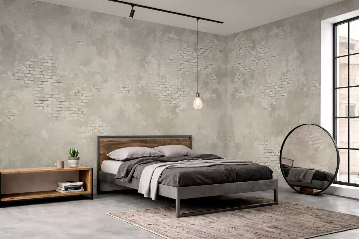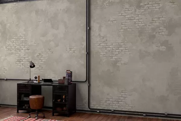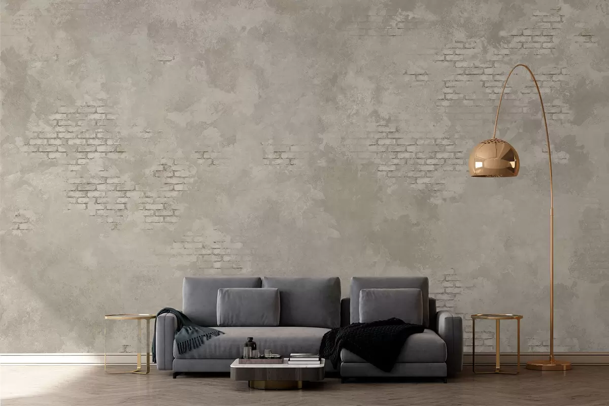 Papel tapiz Yeso ligero de estilo grunge con zonas de ladrillo visto Nr. w05161v1