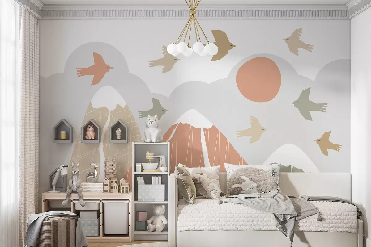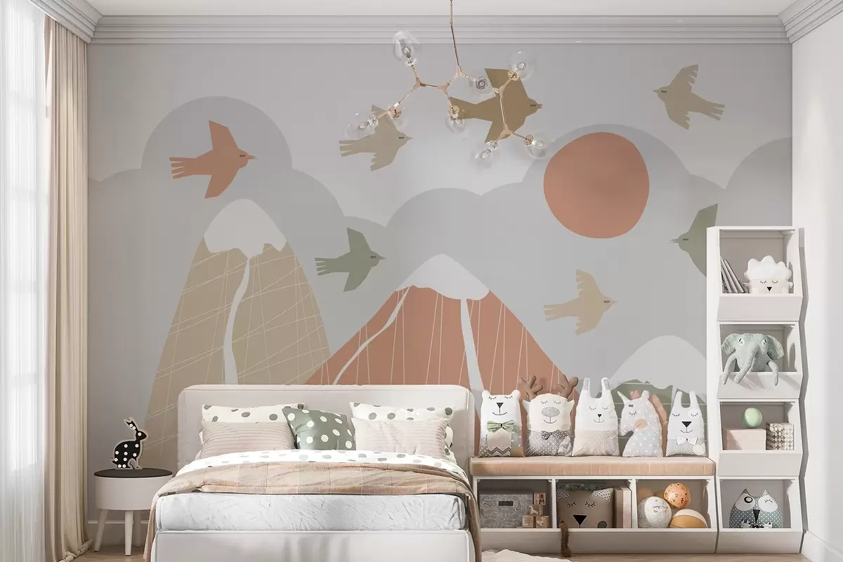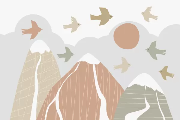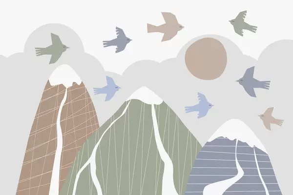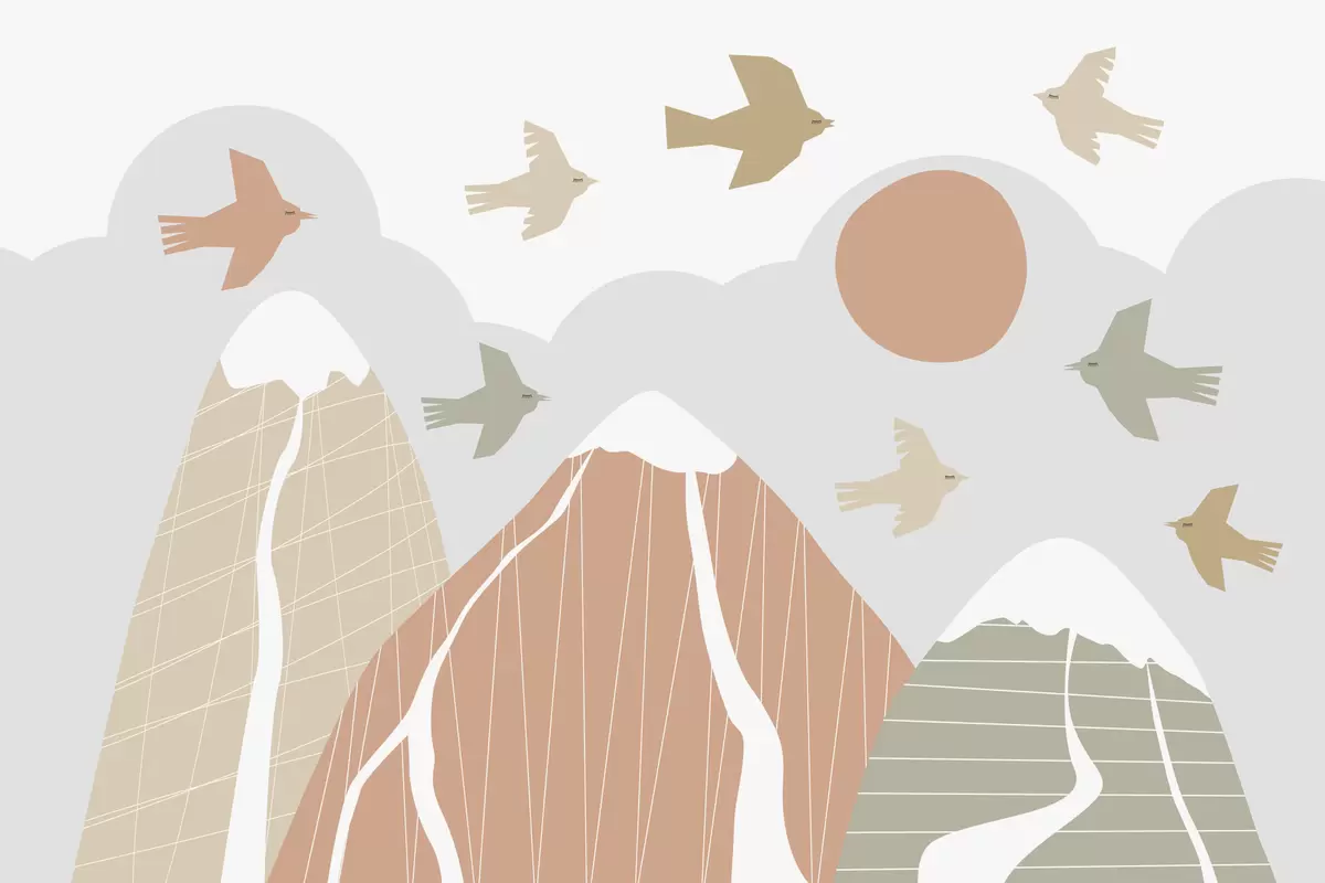 Papel tapiz Las montañas y las aves escandinavas Nr. w05166