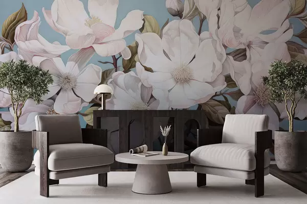 Papel tapiz Exuberantes flores en la rama de un árbol Nr. w05178