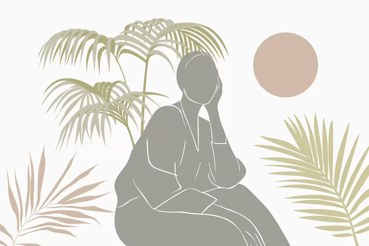Papel tapiz Silueta de una mujer y hojas de palmera Nr. w05190