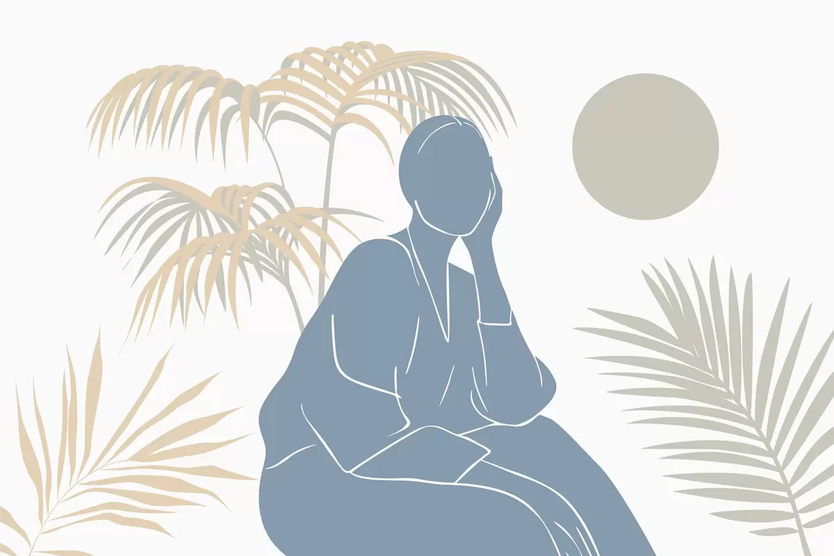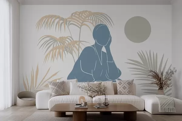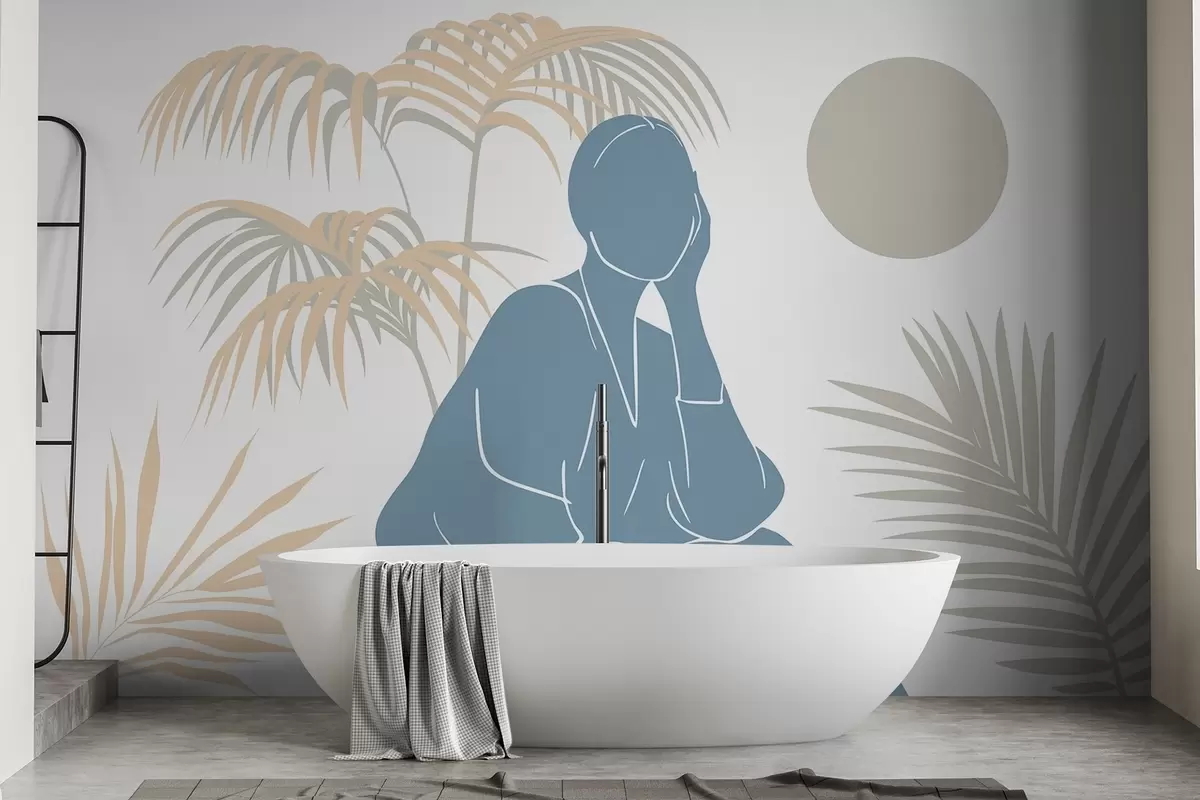 Papel tapiz Silueta de una mujer y hojas de palmera Nr. w05190v1