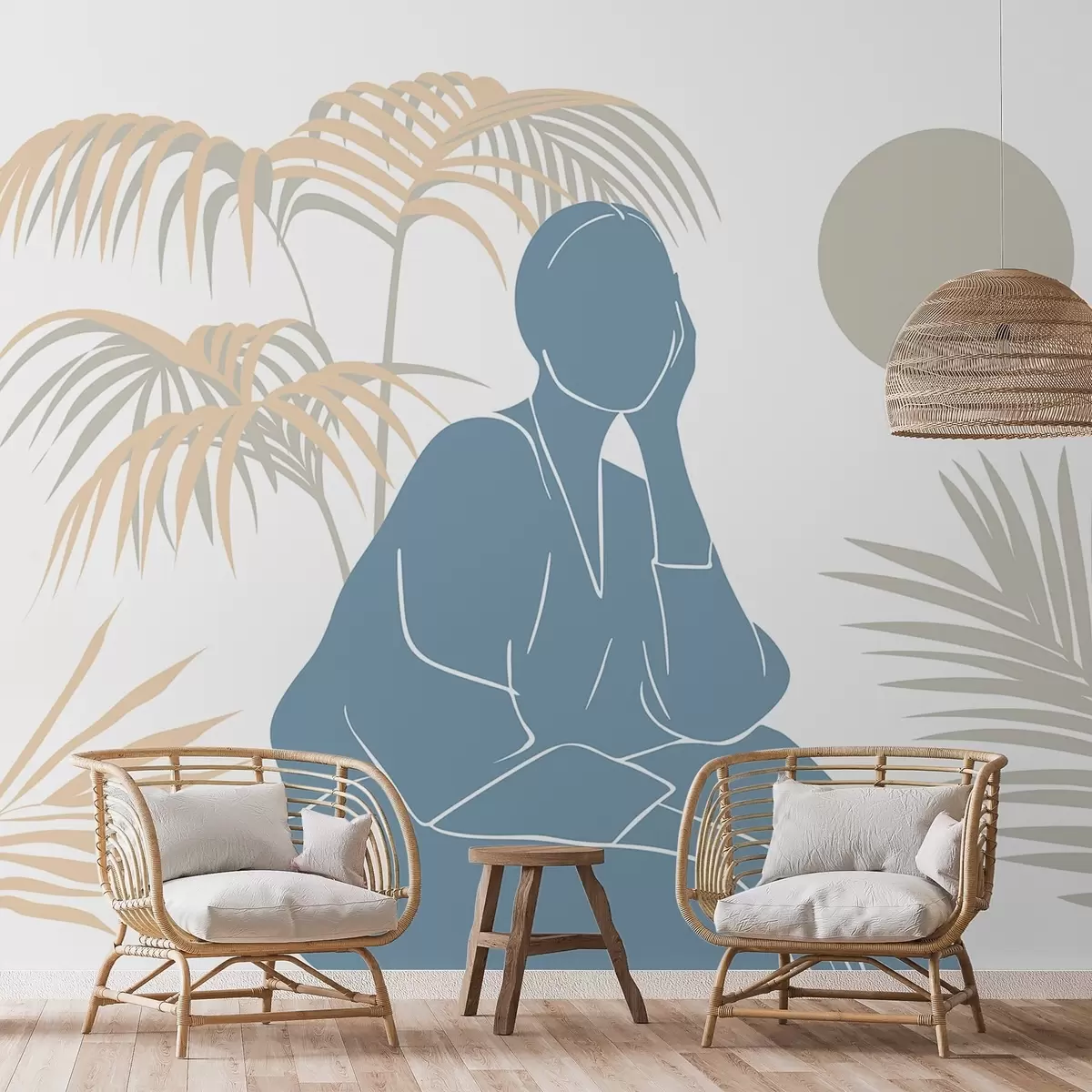 Papel tapiz Silueta de una mujer y hojas de palmera Nr. w05190v1