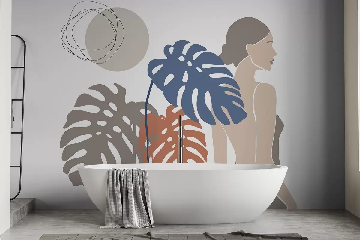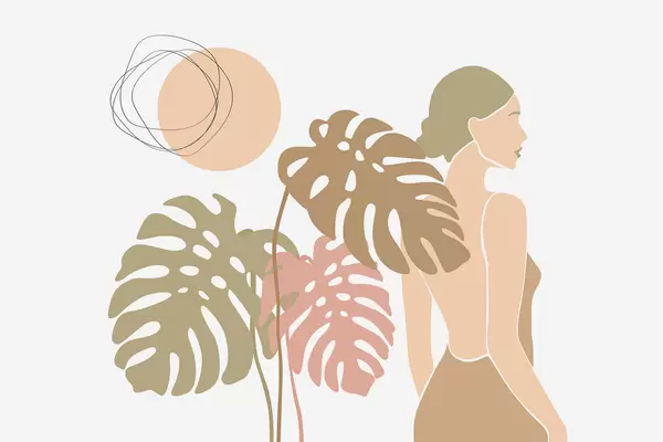 Papel tapiz Silueta de una mujer cerca de hojas tropicales Nr. w05192