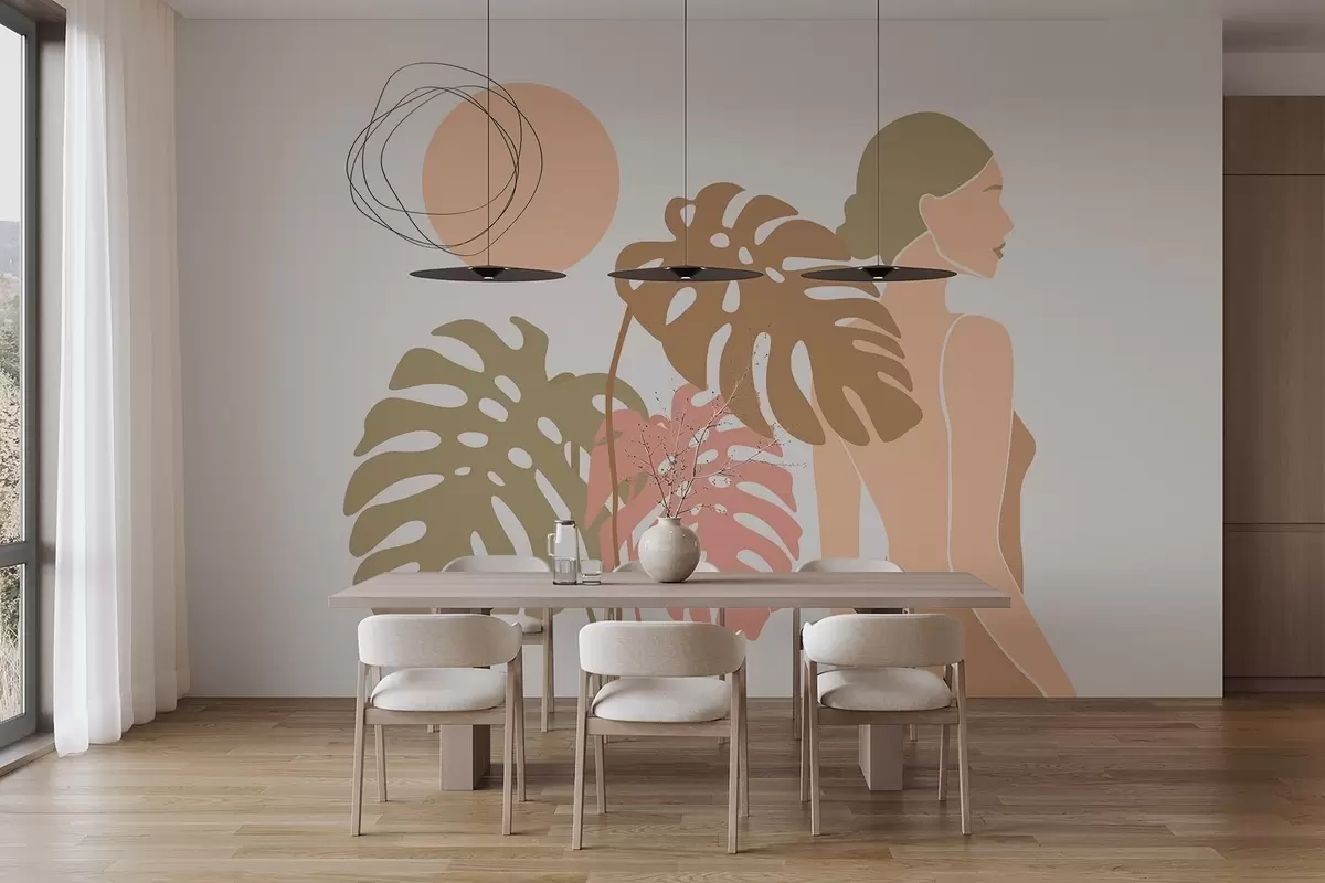 Papel tapiz Silueta de una mujer cerca de hojas tropicales Nr. w05192v1