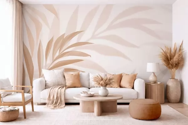 Papel tapiz Grandes hojas de palmera curvadas en tonos beige y marrón. Nr. w05211