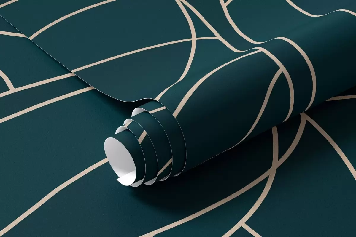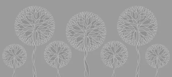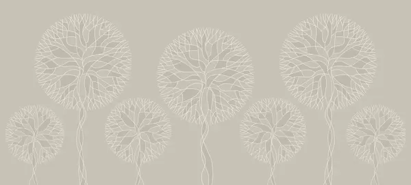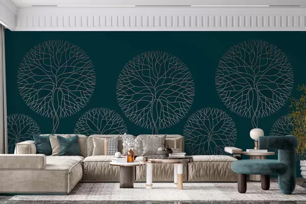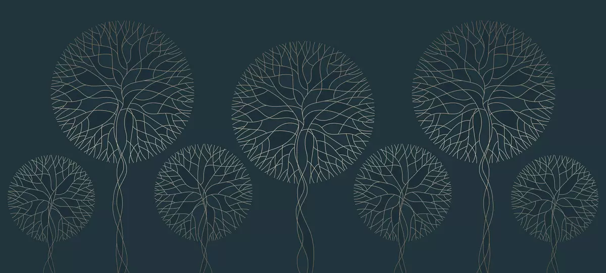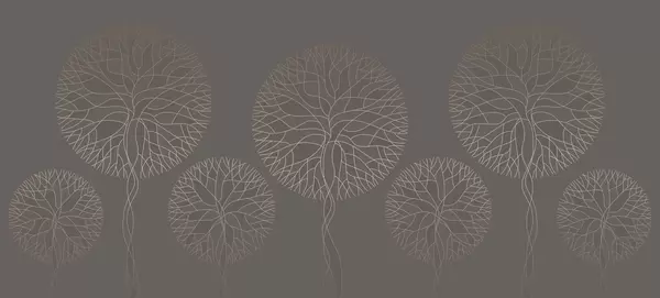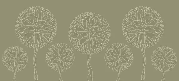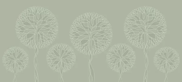 Papel tapiz Árboles lineales fantásticos con copas frondosas en elegantes tonos esmeralda oscuro. Nr. w05213