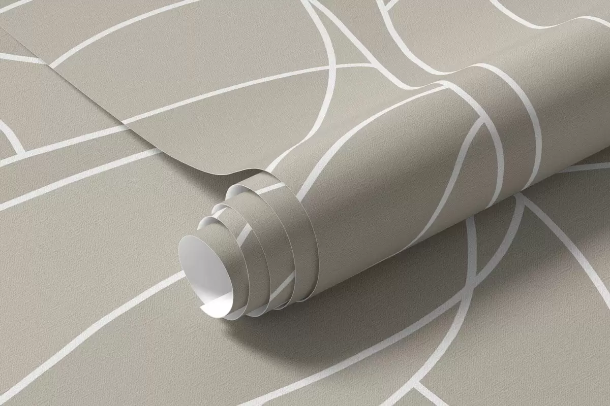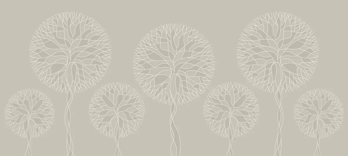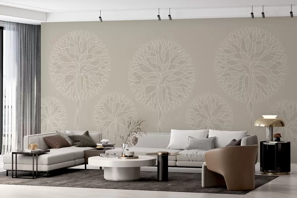 Papel tapiz Árboles lineales fantásticos con copas frondosas en tonos beige. Nr. w05213v3