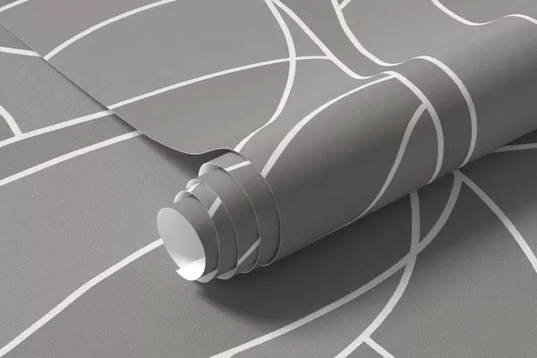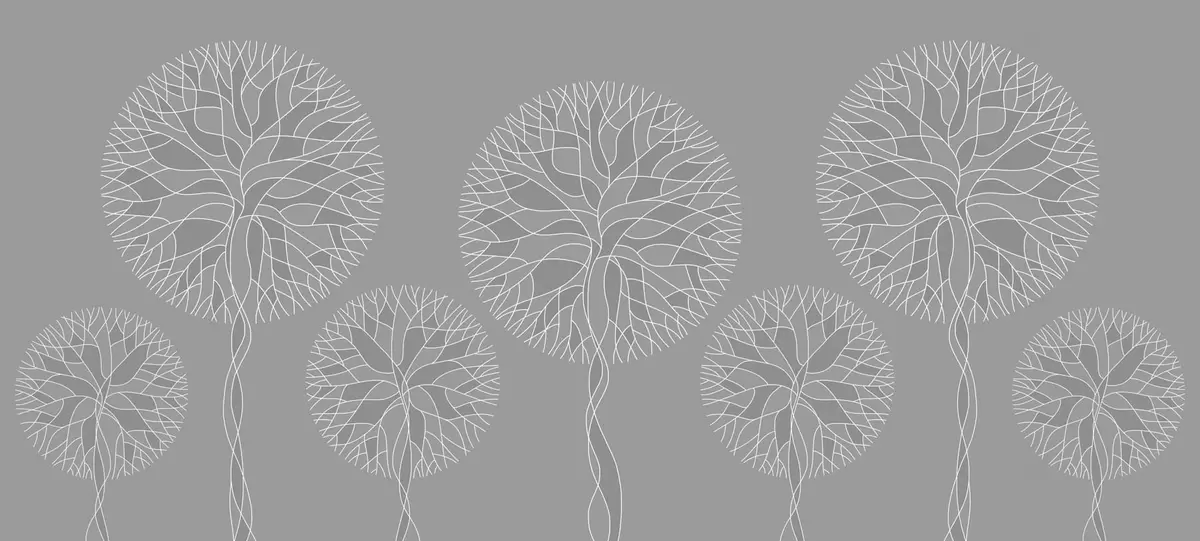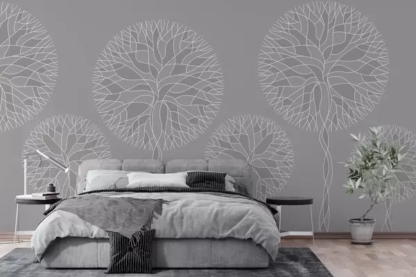Papel tapiz Árboles lineales fantásticos con copas frondosas en tonos grises medios. Nr. w05213v5