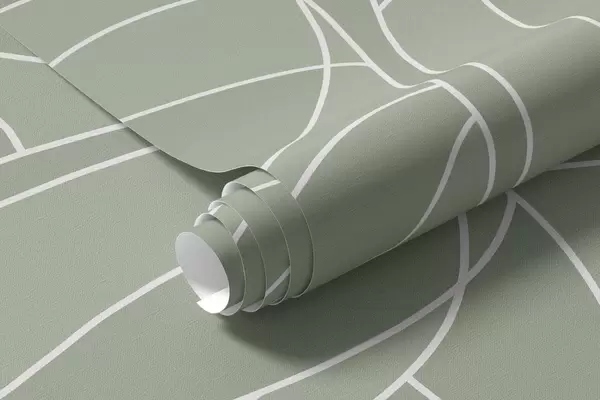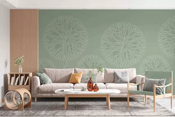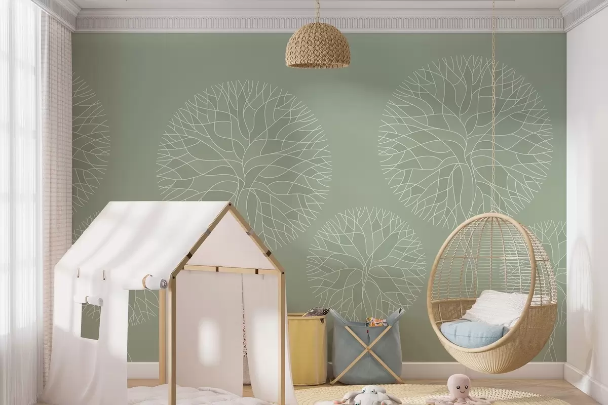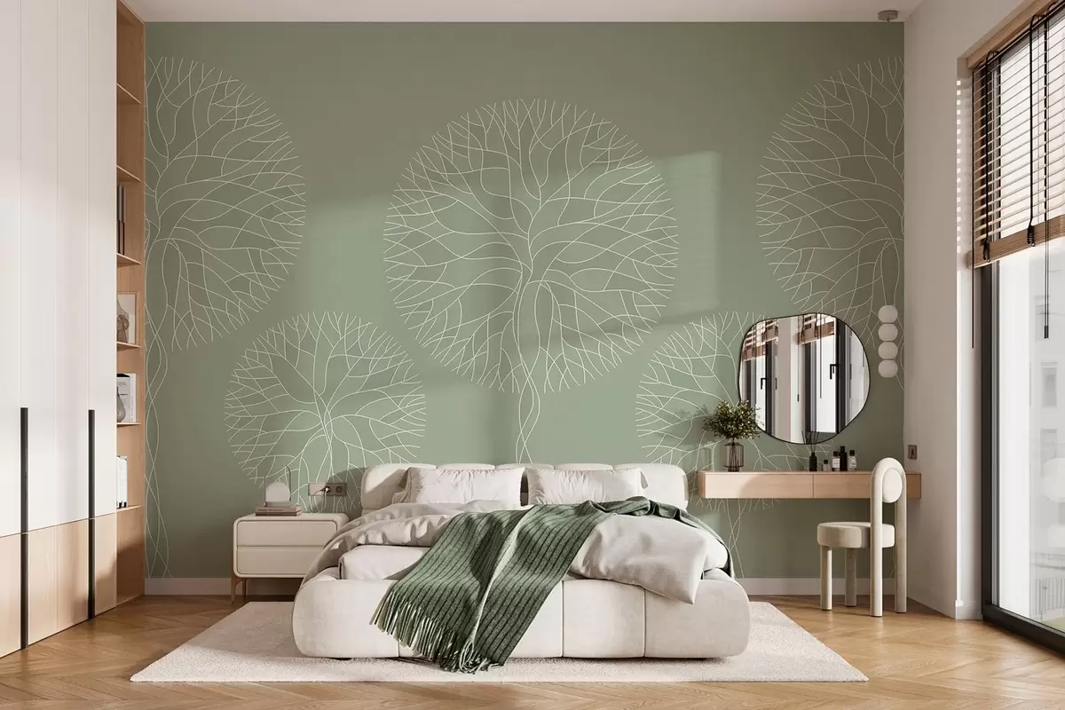 Papel tapiz Árboles lineales fantásticos con copas frondosas en tonos verde claro. Nr. w05213v6