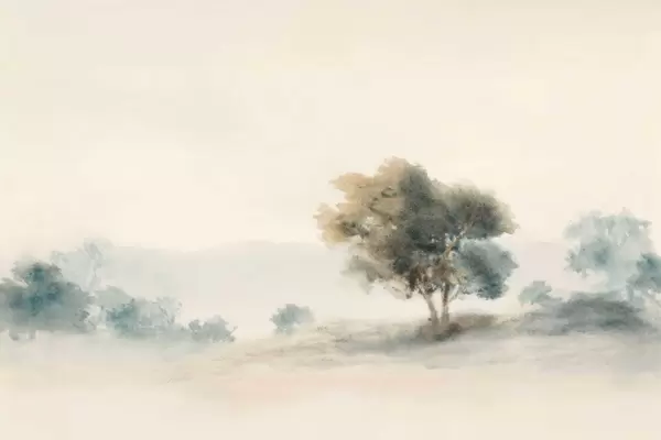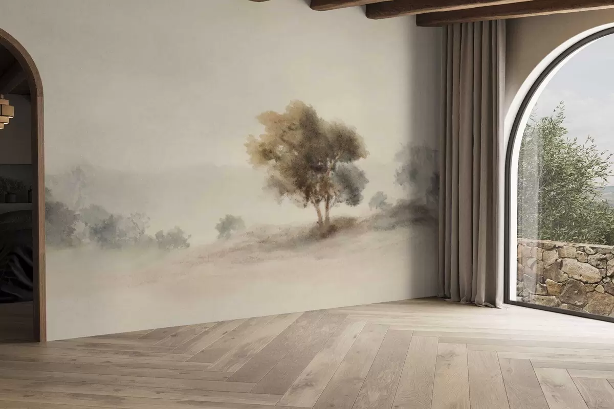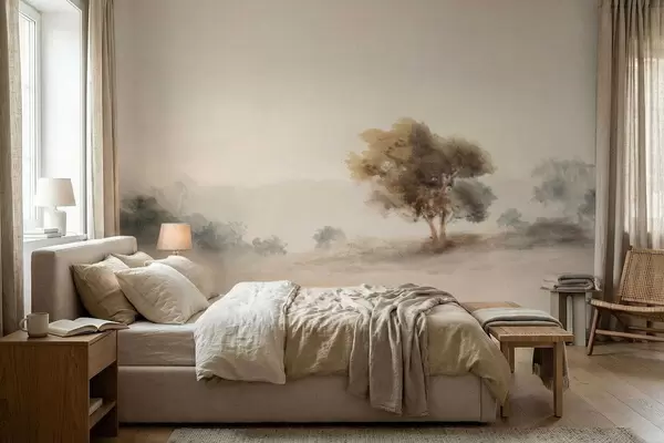 Papel tapiz Paisaje minimalista con un árbol solitario en la niebla. Nr. w05223