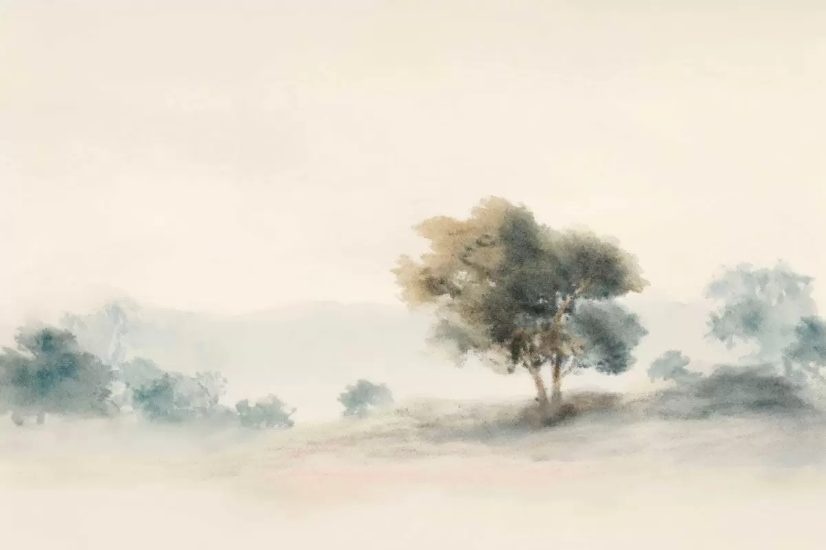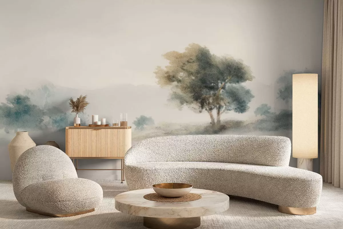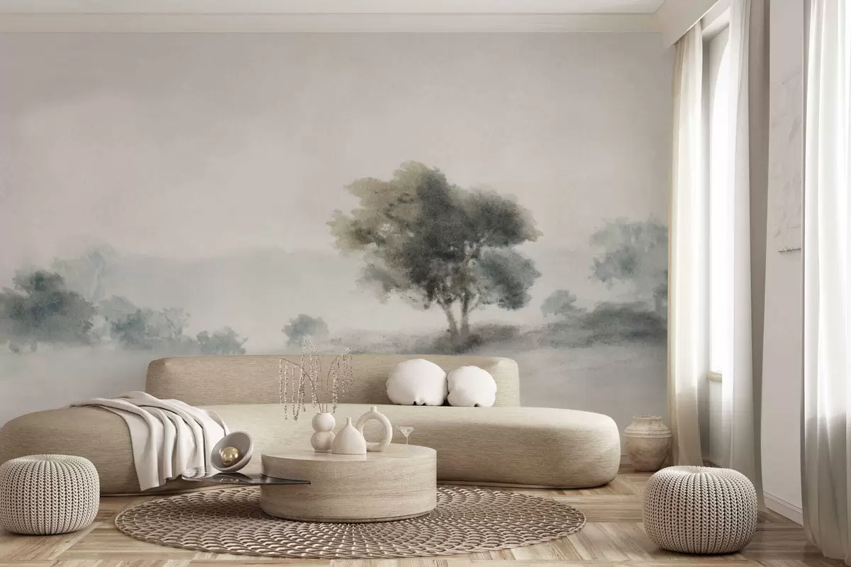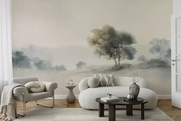 Papel tapiz Paisaje tranquilo con un árbol y formas suaves y difuminadas. Nr. w05223v1