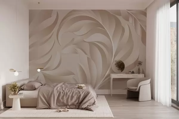 Papel tapiz Plumas grandes con textura en tonos beige y empolvados. Nr. w05231