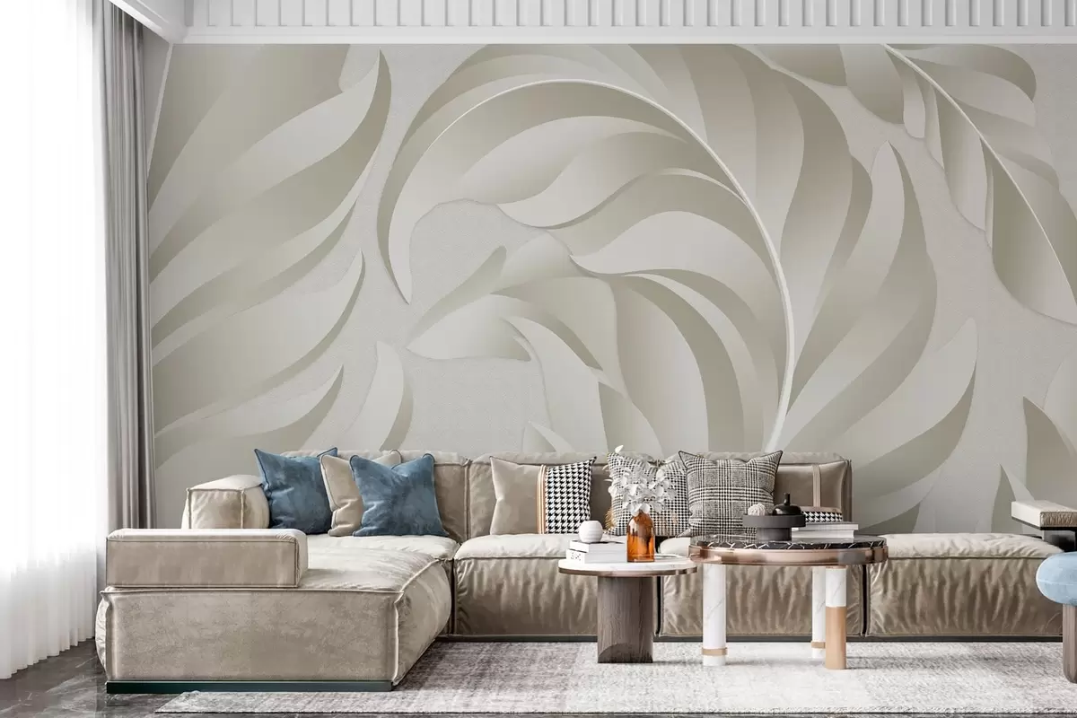 Papel tapiz Plumas grandes con textura en tonos beige y oliva. Nr. w05231v1