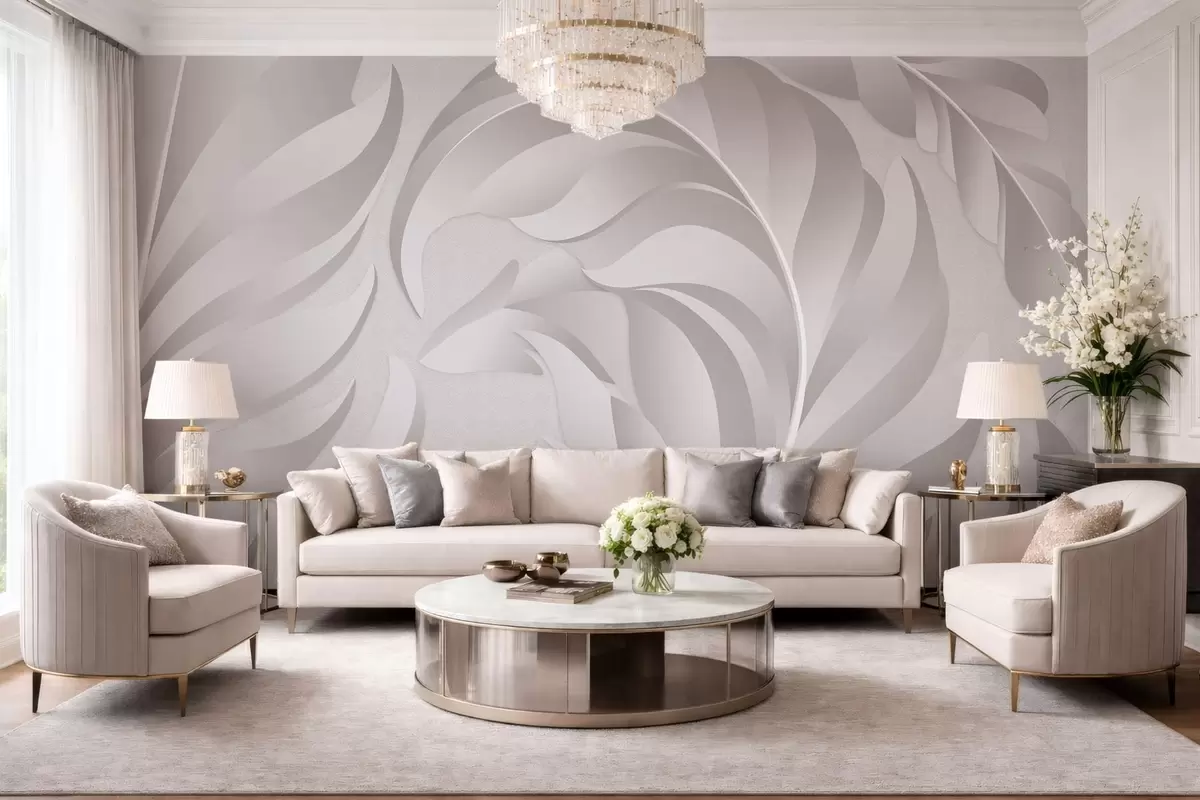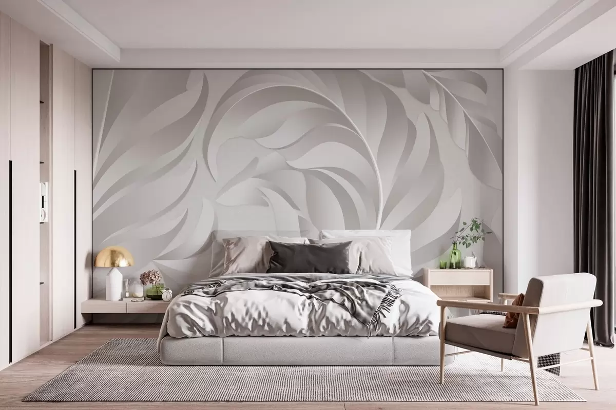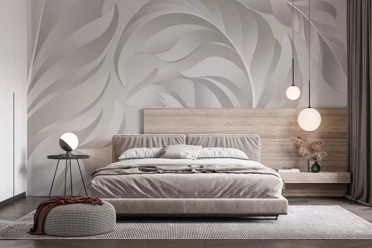 Papel tapiz Plumas grandes con textura en tonos nacarados. Nr. w05231v2