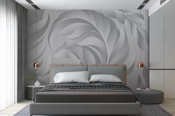Papel tapiz Plumas grandes con textura en tonos grises. Nr. w05231v3
