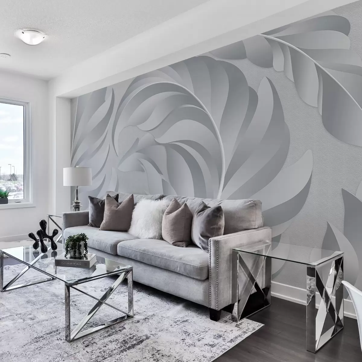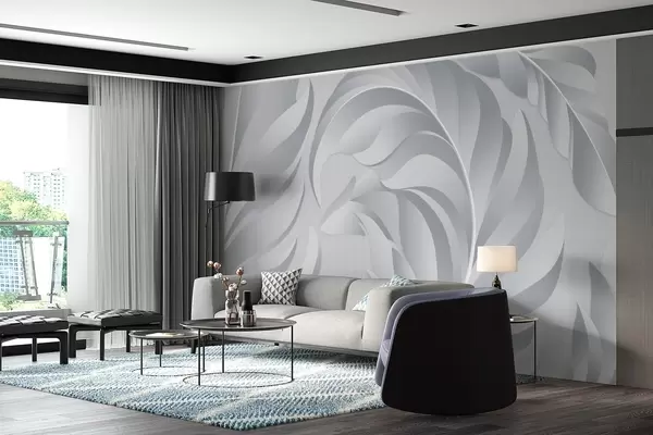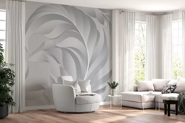 Papel tapiz Plumas grandes con textura en tonos grises. Nr. w05231v3