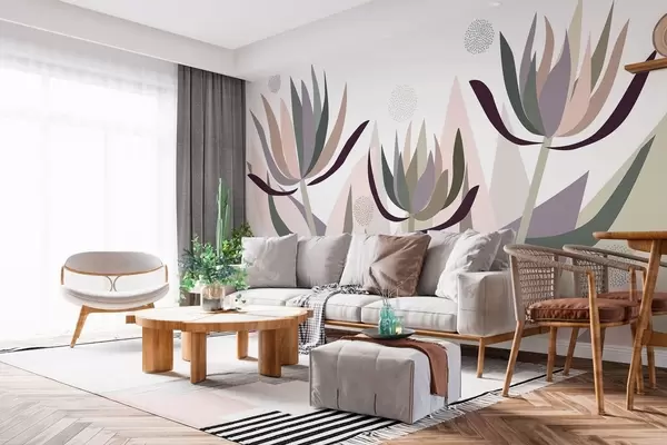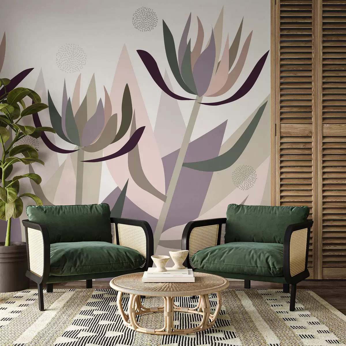 Papel tapiz flores de protea estilizadas en estilo primitivo Nr. w05236
