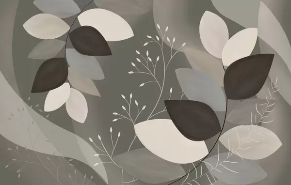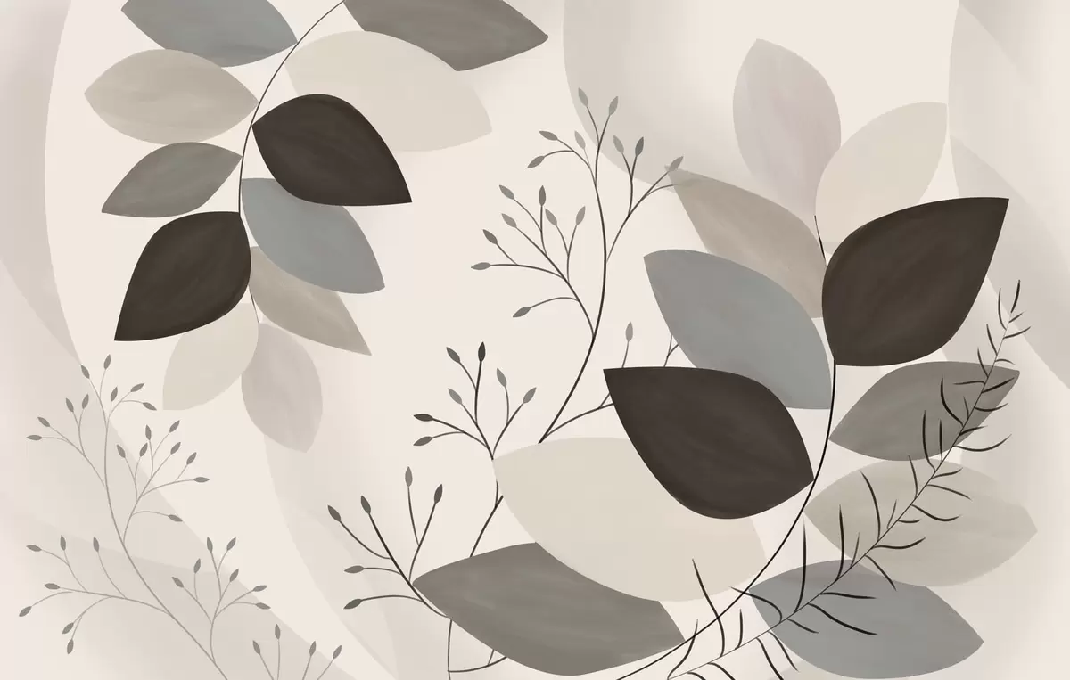 Papel tapiz hojas y hierbas en tonos beige, gris y marrón Nr. w05237